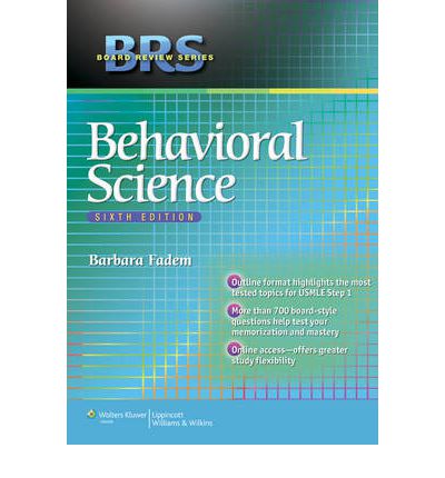 "The Board Review Series" (BRS) is aimed at providing basic knowledge as it relates to clinical situations and is used primarily by medical students studying for the United States Medical Licensing Examinations (USMLE). "BRS Behavioral Science" covers material on this subject that is addressed on USMLE Step 1. Previous editions of this volume have been quite popular with medical students. As in its previous editions, "BRS Behavioral Science" is written in outline format to provide an efficient method of studying Behavioral Science for USMLE. A major focus of books in the "BRS" series is to provide experience to students in answering USMLE-style questions. To this end, the book contains over 700 such questions with accompanying annotated answers. An exam follows each chapter and a Comprehensive Exam is included at the end of the book.